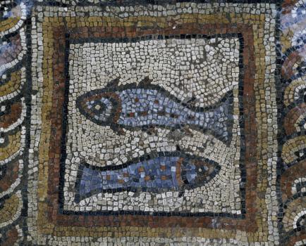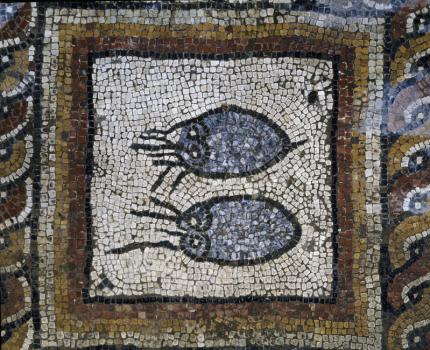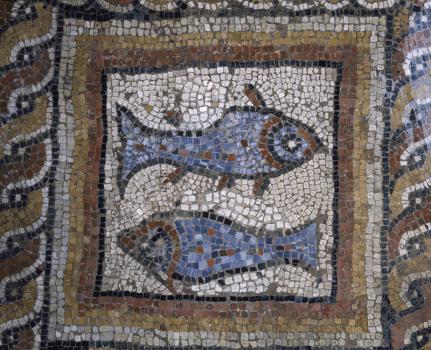 Villa gallo-romaine de Montcaret, piscine froide, détail du pavement mosaïqué