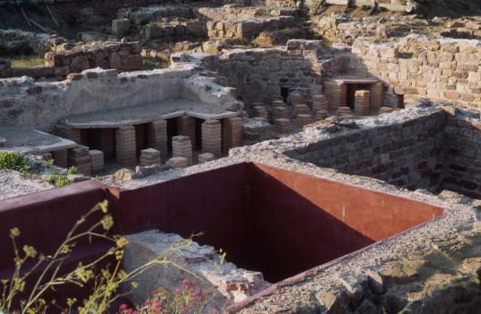 Site archéologique d'Olbia, thermes romains : la piscine et l'hypocauste vus du sud-est