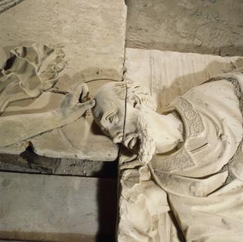 Apparition de l'archange saint Michel à saint Aubert, détail du bas-relief déposé