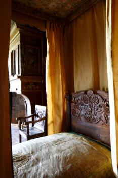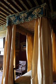 Château de Villeneuve-Lembron, chambre de la Bergère, lit à la française