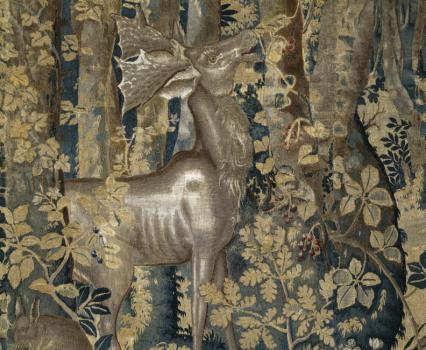 Cerf et perroquet, cerf couché (détail)