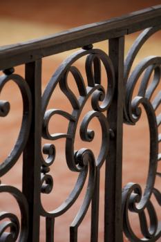 Jardin du Palais-Royal, lances d'une grille, bac à sable