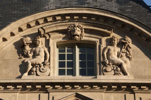 Hôtel de Béthune-Sully, partie haute d'un des deux pavillons de la façade sur rue