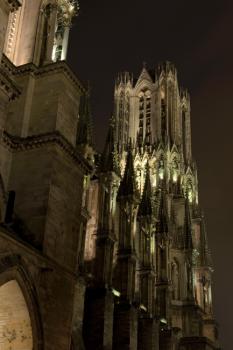 Cathédrale Notre-Dame de Reims, façade occidentale, tour nord vue de nuit