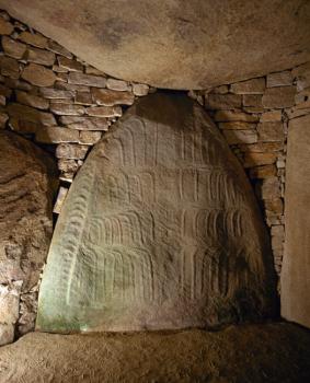 Table des Marchand, chambre polygonale, dalle gravée et appareillage en pierres sèches du cairn