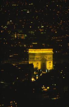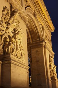 L'Arc de triomphe de l'Étoile, de nuit, côté sud-est