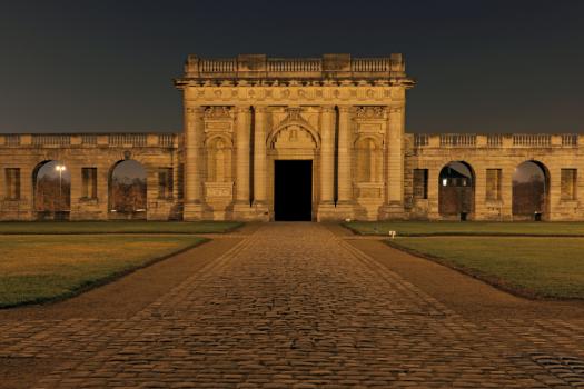 Château de Vincennes, de nuit, tour du Bois et arcades de la courtine sud
