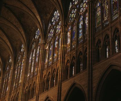 Basilique de Saint-Denis, triforium et fenêtres hautes de la nef