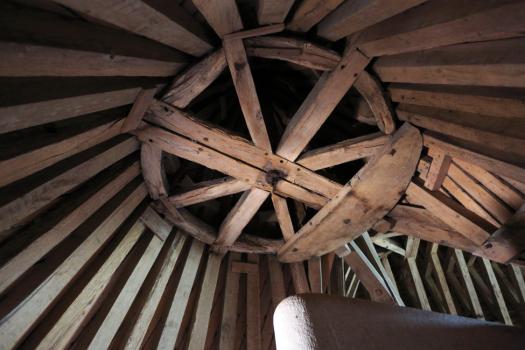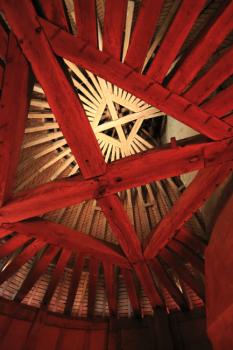 Château de Fougères-sur-Bièvre, tour d'angle, combles, salle de guet, détail de la poivriere