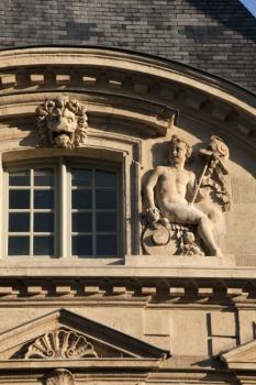 Hôtel de Béthune-Sully, partie haute d'un des deux pavillons de la façade sur rue.