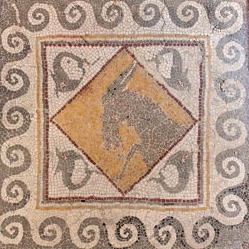 Villa gallo-romaine de Montcaret, piscine froide, détail du pavement mosaïqué