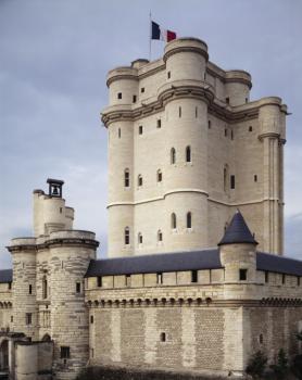 Château de Vincennes, le donjon et son enceinte, ainsi que la Sainte-Chapelle, vus du sud-ouest
