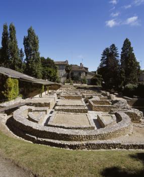 Villa gallo-romaine de Montcaret, grande salle à abside vue depuis le sud
