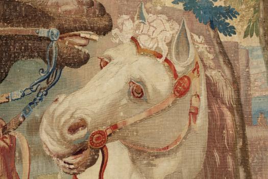 Les cinquième et sixième flacons versés sur le trône et l'Euphrate, détail de la tête du cheval