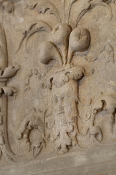 Château d'Azay-le-rideau, salon Biencourt, cheminée, détail du linteau sculpté