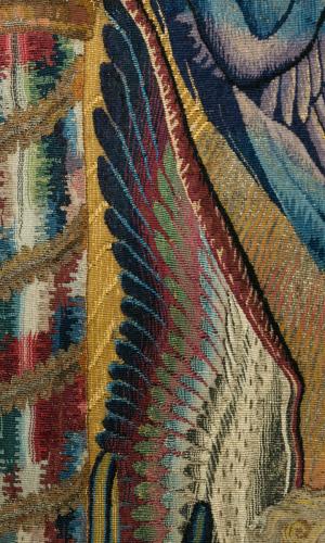 Les larmes de saint Jean, détail de la bordure supérieure : aile de l'ange musicien