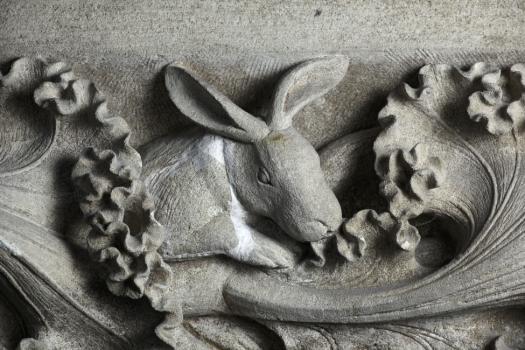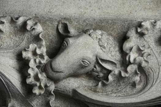 Console de niche en forme de prophète déroulant un phylactère (détail)