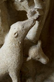 Boeuf, symbole évangélique de Luc, saint Jude (?), saint Matthieu, et saint ?