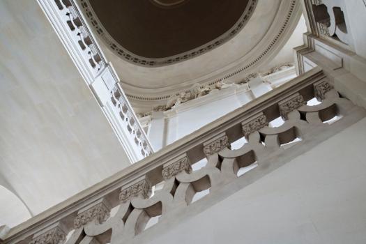 Château de Maisons, grand escalier vu en contre-plongée depuis le rez-de-chaussée