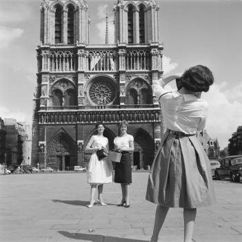 Touristes sur le parvis de la cathédrale Notre-Dame de Paris