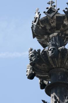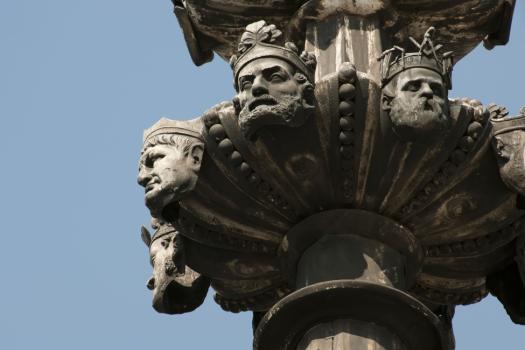 Sainte-Chapelle de Paris, têtes grimaçantes à la base de la statue de l'archange
