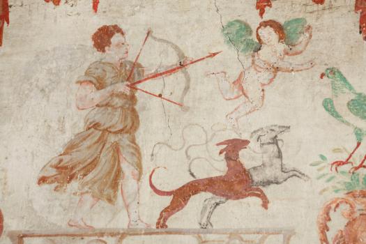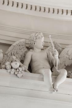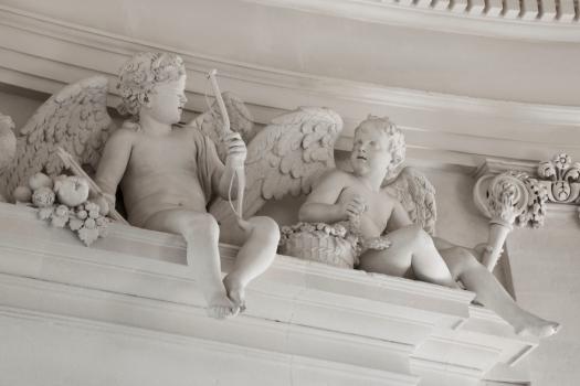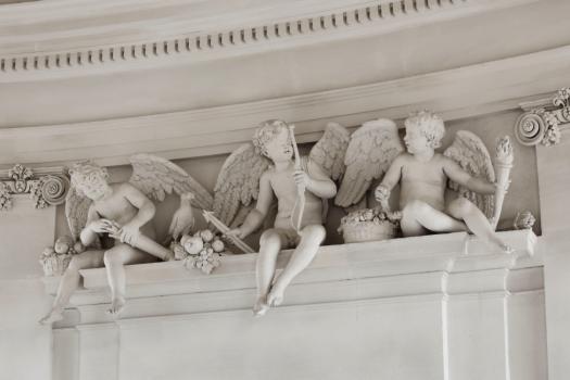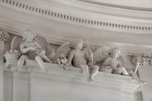 Château de Maisons, escalier, groupe de putti illustrant l'amour, détail