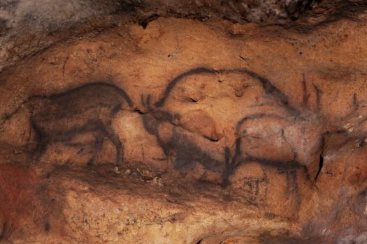 Grotte de Font-de-Gaume, renne et tête d'un bison (détail)