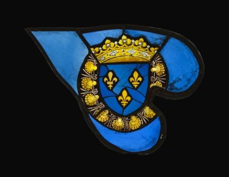 Château de Villeneuve-Lembron, salle des blasons, cheminée (détail)