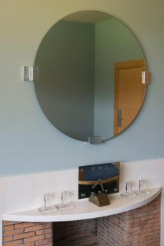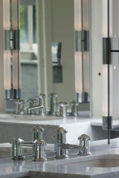 Villa Cavrois, premier étage, salle de bains des parents, détail sur la robinetterie d'un des lavabos