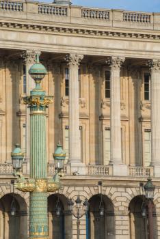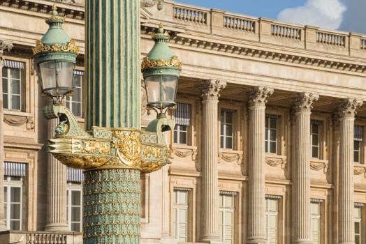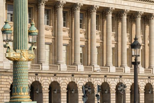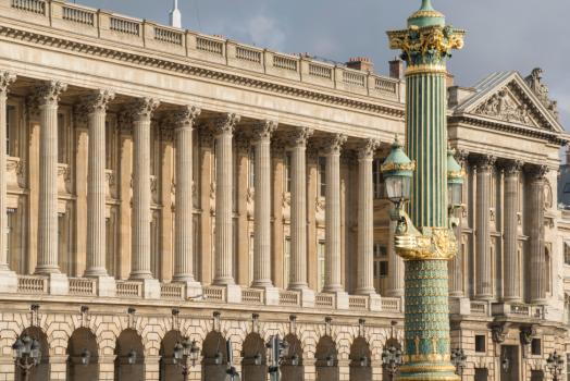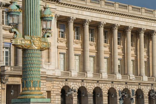 Hôtel de la Marine, colonnade de la façade sud et colonne rostrale de la place de la Concorde
