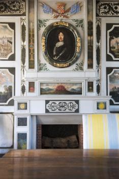 Château d'Azay-le-Rideau, grande salle ou salle des fêtes, détail de la hotte de la cheminée