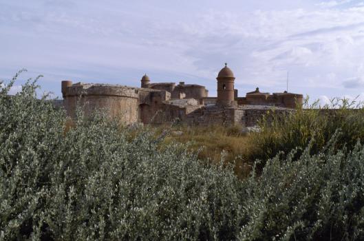 Fort de Salses, contre-garde nord-ouest, bastillon nord-ouest, donjon et bastillon sud-ouest, vus nord-ouest