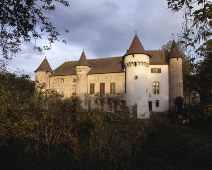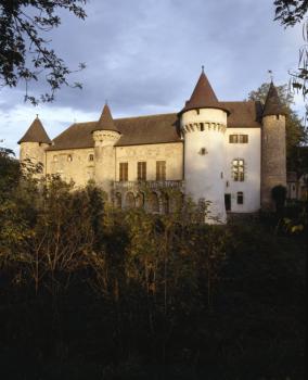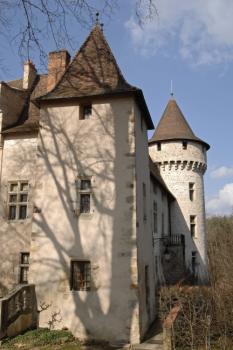 Château d'Aulteribe, façades est et nord vues derrière les arbres du ravin