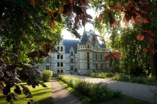 Château d'Azay-le-Rideau, vue d'ensemble des façades est vues du parc
