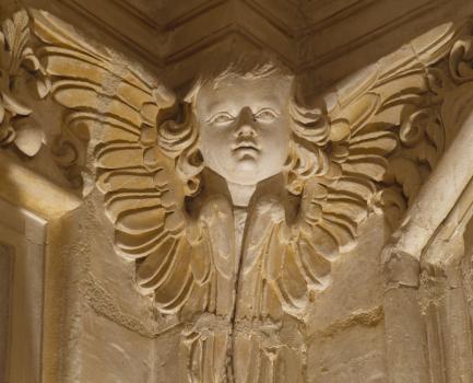 Château de Carrouges, chapitre, chapelle, détail de sculpture