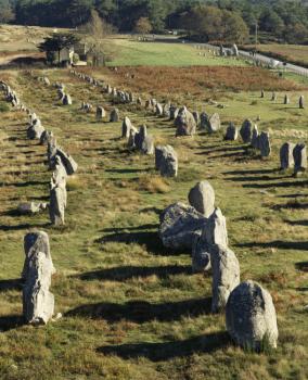 Alignements de Kermario, quelques grands menhirs situés en bordure de la route