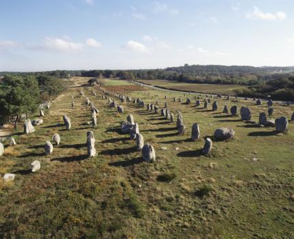 Alignements du Ménec, une rangée de menhirs émergeant de la lande