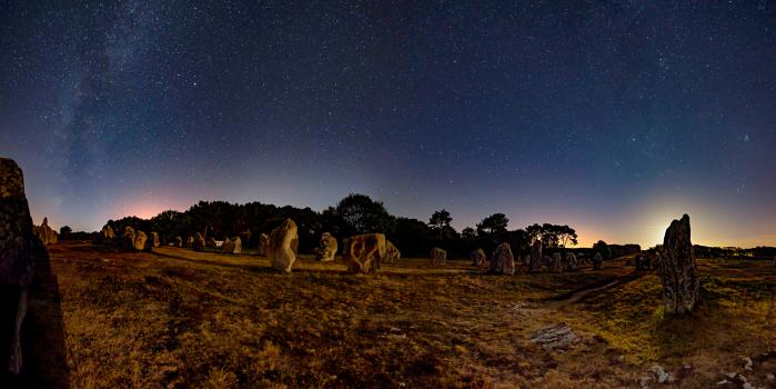 Alignements du Ménec, rangées de menhirs sous les nuages