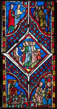 Sainte-Chapelle de Paris, chapelle haute, cinq panneaux figurés de la baie N (6e fenêtre nord, L'Exode)
