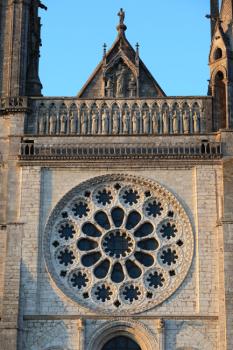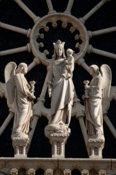 Cathédrale Notre-Dame de Paris, la grande rose, Vierge à l'enfant et anges