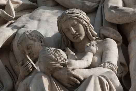 Hôtel de la Marine, cheminée du salon d'honneur : dans la niche, le prince impérial et son chien Néro, par Carpeaux