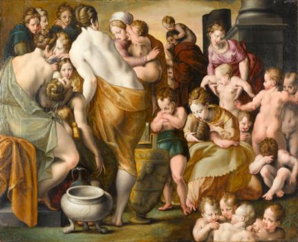 Chariclée amenée par un bouvier à sa femme, détail de la partie centrale