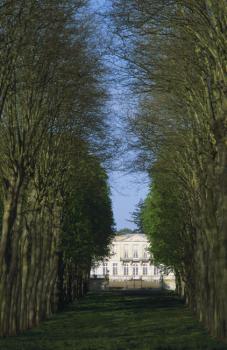 Château de Bouges, façade est vue de l'allée cavalière précédant la grille d'entrée
