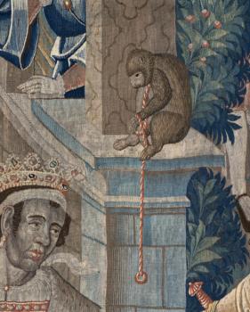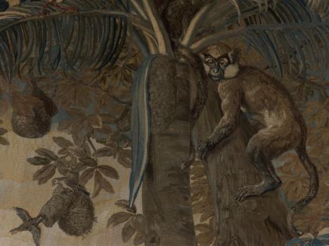 Tapisserie des Gobelins. Tenture des Nouvelles Indes. la négresse portée dans un hamac. Détail
