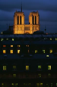 Cathédrale Notre-Dame de Paris, façade occidentale de nuit