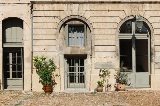 Hôtel de Lunas, façade sur jardin, portes-fenêtres en rez-de-chaussée