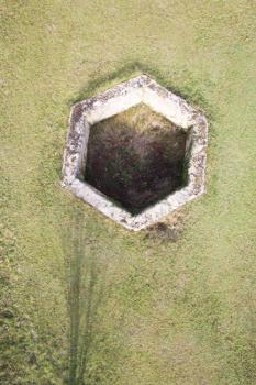 Sanctuaire gallo-romain de La Hillière, vue aérienne du bassin octogonal