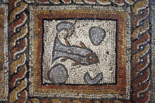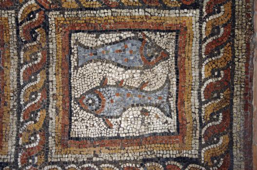 Villa gallo-romaine de Montcaret, piscine froide, détail du pavement mosaïqué