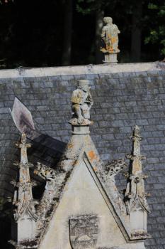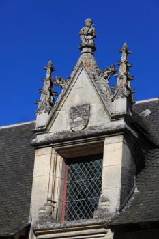 Château de Fougères-sur-Bièvre, sculpture au sommet d'un fronton de lucarne