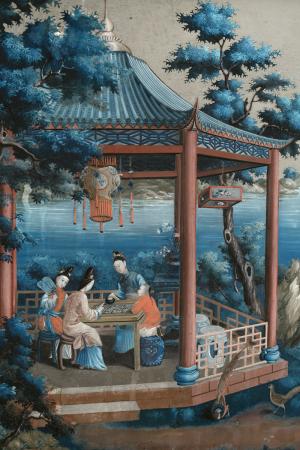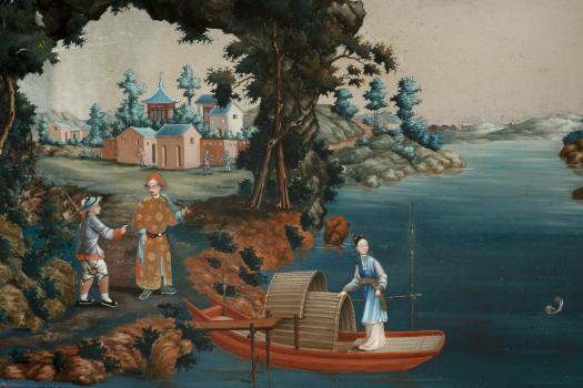 Château de Champs-sur-Marne, costume féminin du XVIIIe siècle dans le salon chinois
